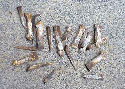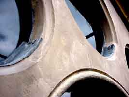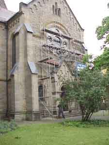 ![]() | Das sind einige der vielen Dachspanten, mit denen die Sandsteinplatten 100 Jahre lang an der Rosette befestigt waren. |