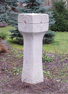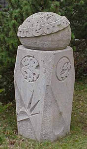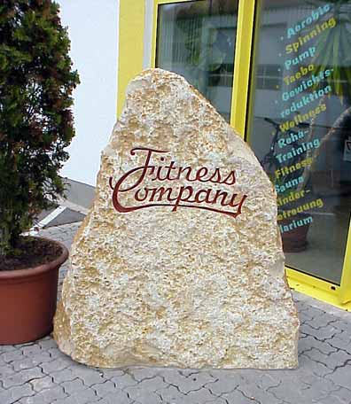Kurze Zeit später steht der Stein beim Auftraggeber Die Schrift ist in den Stein gemeiselt,