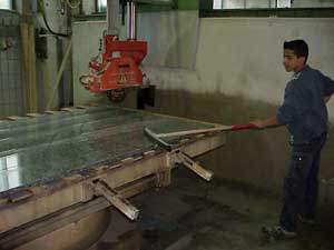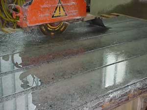 ![]() | Wasser bindet den Staub und kühlt das Trennblatt. |