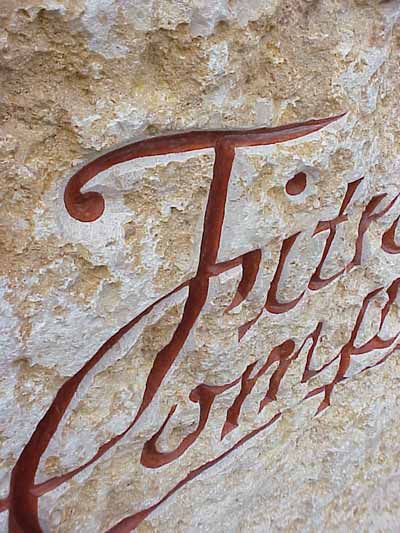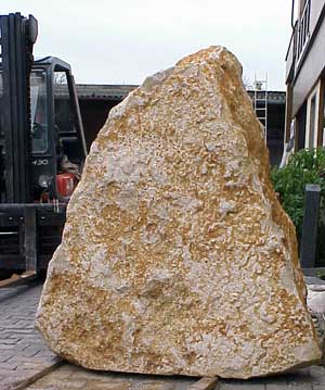 Kurze Zeit später steht der Stein beim Auftraggeber Die Schrift ist in den Stein gemeiselt,
